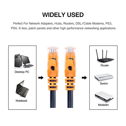 • ✔Cat6 patch cable connects all the hardware destinations on a Gigabit Local Area Network (LAN), such as PCs, computer servers, printers, routers, switch boxes, network media players, NAS, VoIP phones, PoE devices, and more; Supports: Gigabit 1000 BASE-T; 100 BASE-T; 10 BASE-T .Meets or exceeds Category 6 performance in compliance with the TIA/EIA 568-C.2 standard
