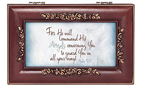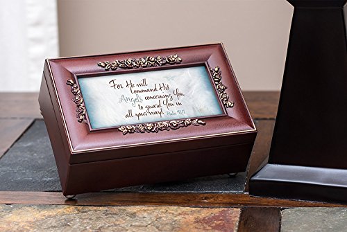 Angels Guard You Psalm 91:11 Rose Wood Finish Jewelry Music Box Plays Canon in D
