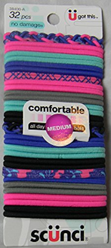 -. Binding : Misc. -. Brand : Scunci -. EAN : 0043194384006 -. Feature : Give your hair a fun, different style with these Scunci Elastics / All the essentials you need when wearing your hair pulled back! / Braided Elastics For a sleek polished profile / 4 mm thick elastics / 32 Count 4 MM large Ouchless Hair Elastic Ponytailers -. IsAdultProduct : 0 -. Label : Conair Corporation/L&N -. Manufacturer : Conair Corporation/L&N -. MPN : 262153 -. PackageQuantity : 32 -. PartNumber : 262153 -. ProductGroup : Beauty -. ProductTypeName : BEAUTY -. Publisher : Conair Corporation/L&N -. Studio : Conair Corporation/L&N -. Title : Scunci Bright Colors Pink, Purple and Green - 32 Count Comfortable Elastics for all day Medium Hold -. UPC : 043194384006