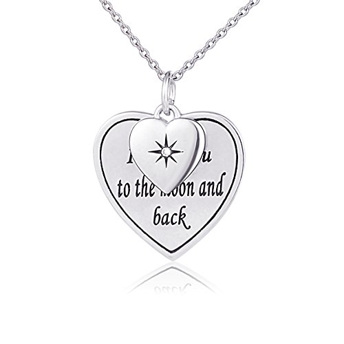 -. Feature : Theme: "I Love You to the Moon and Back" Double Heart Pendant Necklace / Material: 925 Hypoallergenic Sterling Silver with AAA grade quality Cubic Zirconia,Tarnish Resistant, Nickel Free / Pendant Size: 20*20mm; Pendant Weight: 4.36g, Chain length: 18 inches Rolo Chain / Christmas Gift, Halloween Gift,Thanksgiving Day Gift, Valentine's Day Gift, Mother's Day Gift, Birthday Gift, Wedding Anniversary Gift, Black Friday / 100 satisfaction guaranteed: 30 free risk money back to protect you when you receive any fake or defected order, welcome to test our jewelry