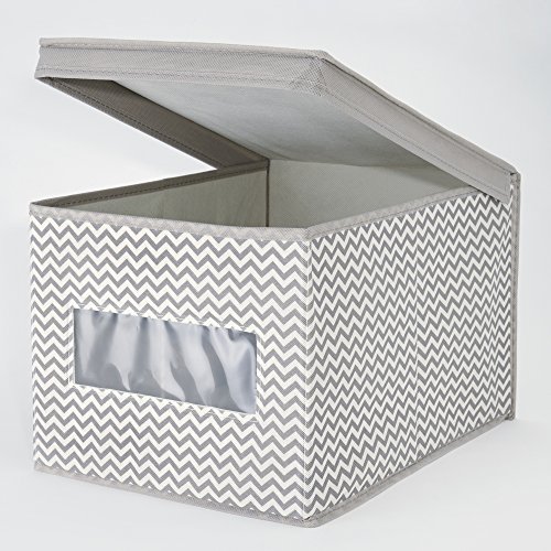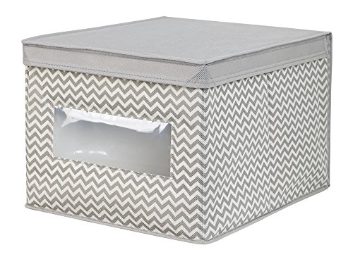mDesign Chevron Fabric Baby Nursery Closet Organizer Box for Clothing, Blankets, Towels, Bibs - Large, Taupe/Natural