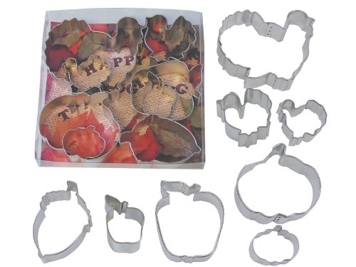 - Large Turkey - 3.75", Large Pumpkin 3", Large Apple 4", Acorn 2.75", Leaf 3.25, Mini Turkey, Apple, Pumpkin 1.75"