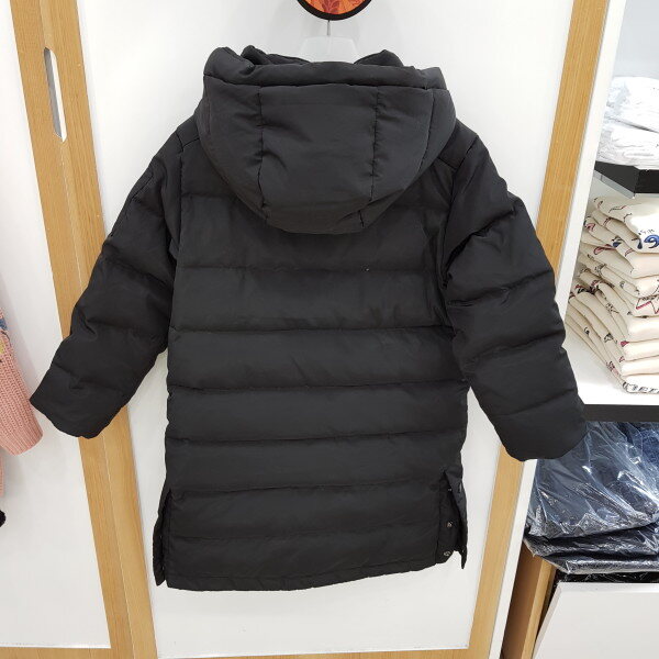 블랙후다장식롱다운점퍼입니다.길이감이있어좋습니다.옆트임이있어활동하기에편합니다.