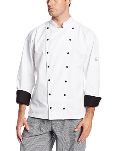 Chef Revival J013 Chef-Tex Poly Cotton Executive Long Sleeve Jacket with Black Cuff and Push Through Button, 4X-Large, White