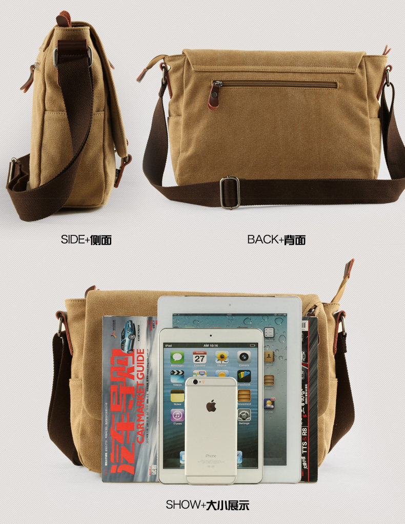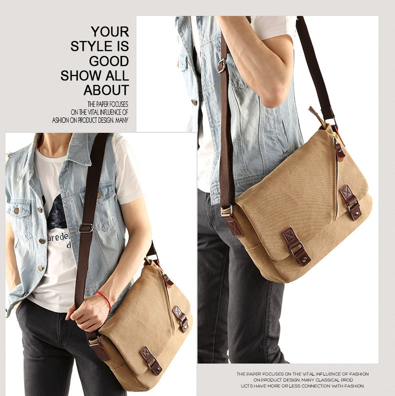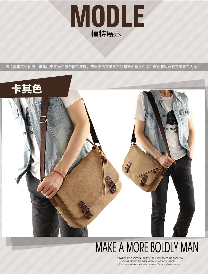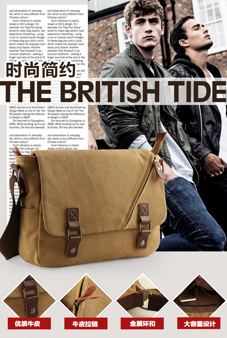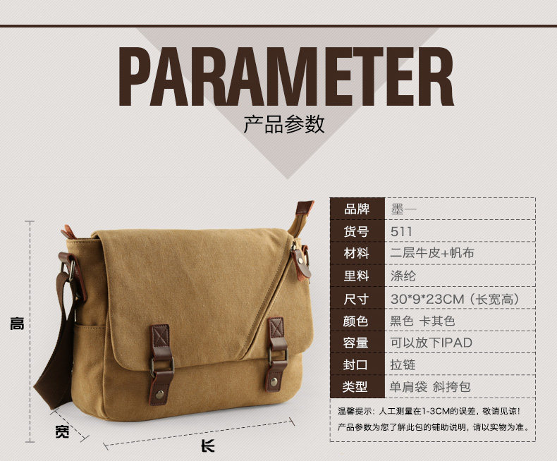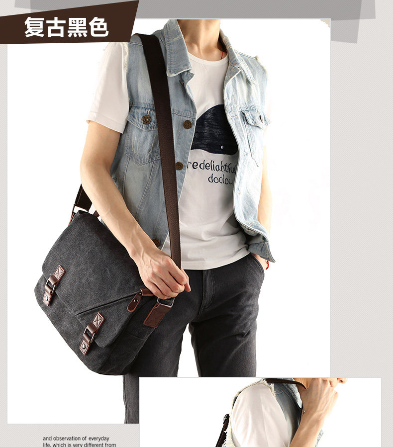墨一潮流帆布包男包休闲单肩包户外休闲斜挎包学生背包男士斜背包