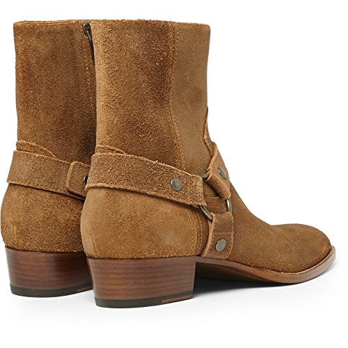 (Jinfu)/Men's/Boots/DIRECT FROM USA/Jinfu Mens Suede Buckles Side Zipper Brown Chelsea Ankle Boots High Top Knight Shoes