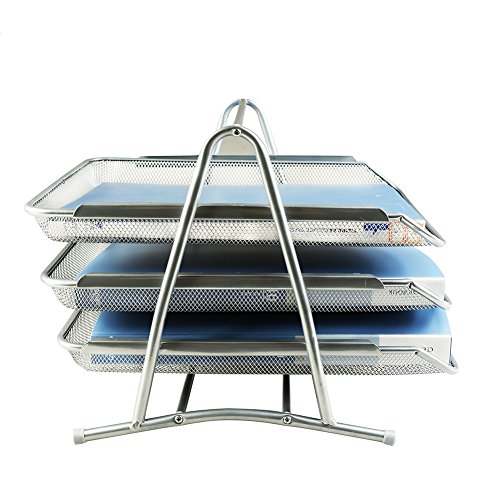 Xinyaoshi STACKABLE 3 Tier Desk Document Letter Tray Organizer (silver)
