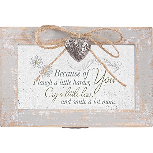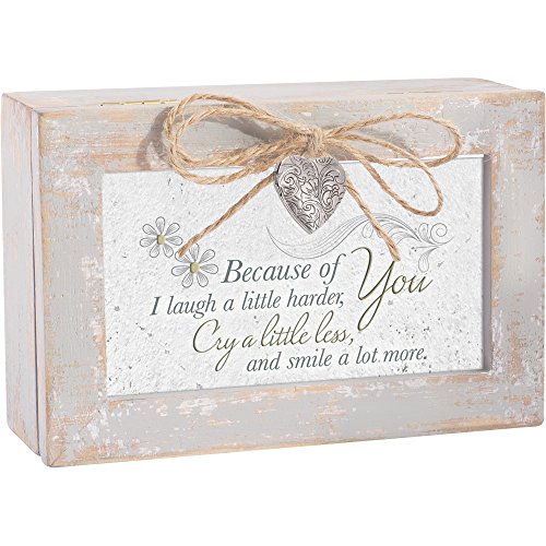 Because of You Smile Distressed Wood Locket Jewelry Music Box Plays Tune That's What Friends are For