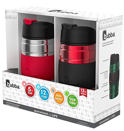 Whether you're heading into the office on your daily commute or escaping to the beach for the weekend, be sure to take the 2-Pack of bubba hero grip vacuum-insulated stainless steel travel mugs, 12 oz., which will keep drinks hot or cold for hours without sweating, letting you (and a friend) hold on comfortably. Its leak-proof, easy-clean lid features a locking flap so you can go from the car to the office without worrying about random drops of Coffee or water on your shirt or suit. The BPA-free lid is made of stain- and odor-resistant plastic so you won't have to worry about lingering tastes or smells when you switch beverages. Cross-country Road trip? you'll be happy to know that your travel mug easily fits most car cup holders. The nonslip silicone grip means you'll feel secure carrying this travel mug while on the go. At the end of the day, throw lid and body onto the top rack of your dishwasher for a no-fuss cleanup. Rest assured, your bubba is guaranteed for life.Feature