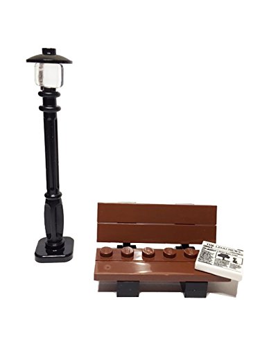 -. Feature : Genuine New L.E.G.O® Parts / 1 Custom Made L.E.G.O Street Lamp (Decorative only -- not a working lamp!) / 1 2x2 decorated tile: L.E.G.O News / 1 Custom Made Park Bench (bench is made of 10 L.E.G.O pieces)