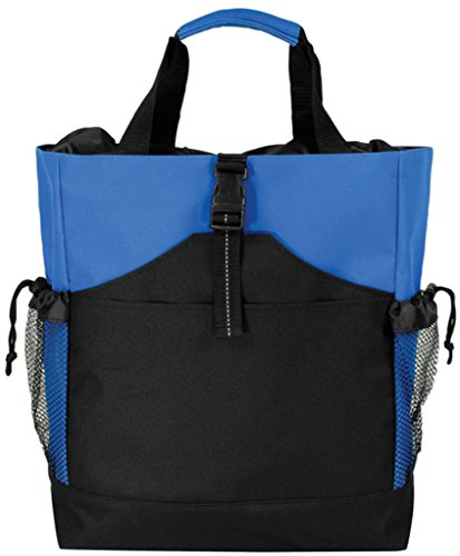 -. Feature : Backpack Tote / Material - 600D polyester w/heavy vinyl backing / Size - 13 W x 16-1/4 H x 5-1/2 D in. / Color - Royal/Black / Case of 48