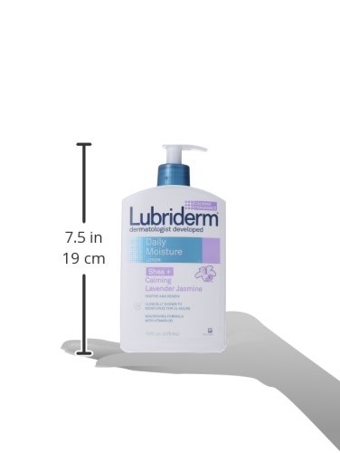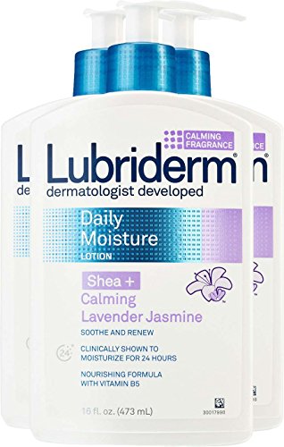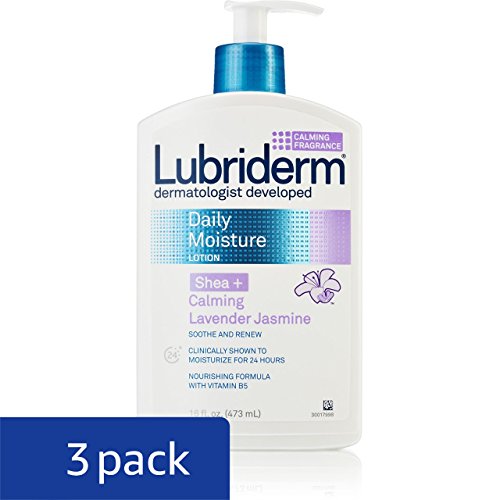 Nourish dry skin and leave it smelling as good as it feels with Lubriderm Daily Moisture Lotion, Shea + Calming Lavender Jasmine. This non-greasy lotion has been clinically shown to moisturize skin for 24 hours. It contains Vitamin B5 and shea butter to replenish dry skin, leaving it feeling soft and healthy-looking. The lotion absorbs in seconds and has a calming lavender and jasmine fragrance.Feature