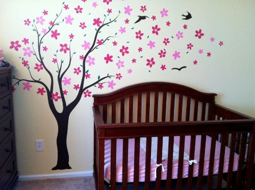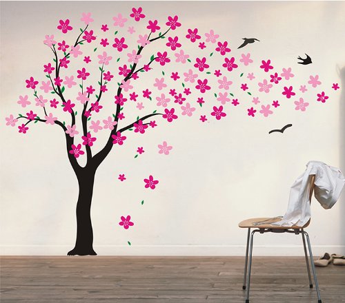 Pop Decors Drifting Flowers and Birds Tree Wall Decals for Nursery Room, 71"