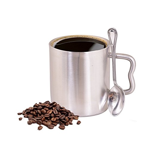 Kosma Stainless Steel Coffee Mug Double Wall Coffee Cup Travel Mug Camping Mug Espresso Cup with "Free" Coffee Spoon - 250ml