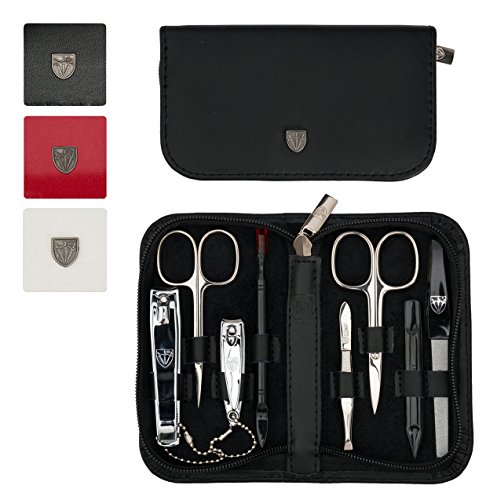 3 SWORDS GERMANY - 8 pieces Manicure & Pedicure Case, made of Genuine leather black - Quality: Made in Solingen