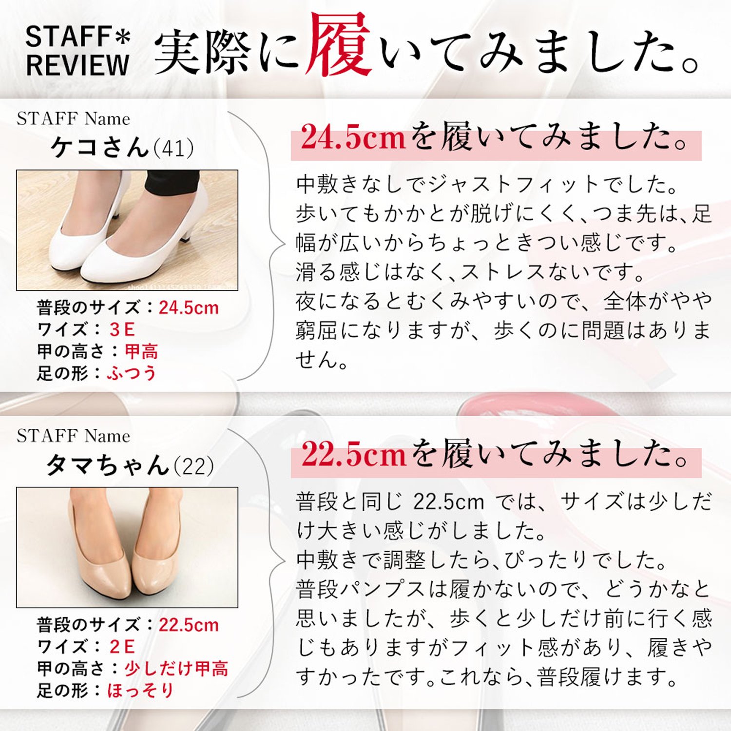 It is also a point that it is hard to get tired and easy to walk with a low friction cushion! The size is 0.5 cm increments from 22 cm to 25 cm.