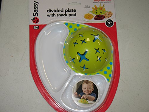 Product Description A plate that develops hand eye coordination and self feeding skills by creating a 3D feeding experience! The snack pod brings food to life and makes it easy for your toddler to self-feed. Great for hiding a special treat as a reward when child finishes their meal! That is a great incentive. The divided plate is perfectly portioned for your child's mealtime. Easy to use and clean, no skid base, and of course it's BPA free! Sassy feeding products are designed to build confidence and independence by providing opportunities to practice the physical skills required for successful self-feeding, such as pincer grasp, hand to midline, and fine motor put take. 0