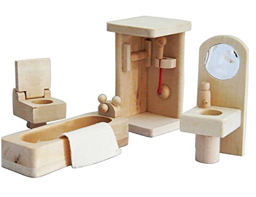MINI WOODEN DOLLHOUSE FURNITURE SET, BATHROOM