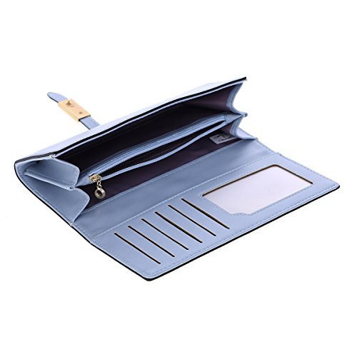 Product Description This simple wallet well meets your daily use. Faux leather made. Entry with belt-shaped snap closure. Inside is 2 cash layers, 1 zipper closure, 5 card slots and 1 photo window. Purse measurement: 19 x 9 x 3cm ( 7.5 x 3.5 x 1.2 inches). 0