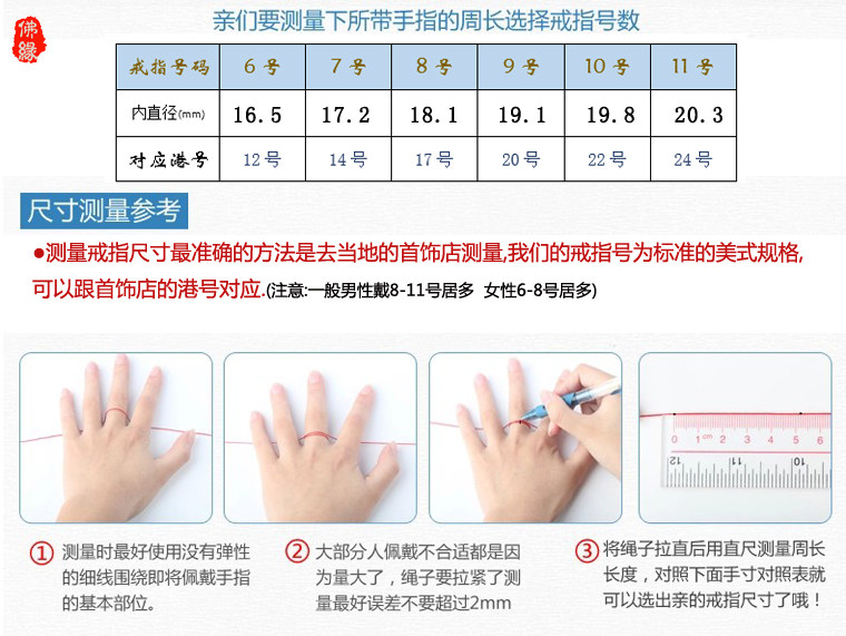 尺寸推荐:师兄先用绳子围绕手指一圈,然后拉直绳子,量一下绳子长度。