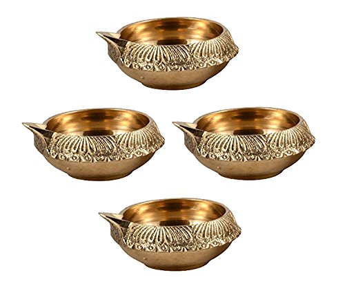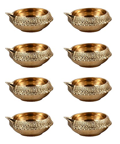 Hashcart Handmade (Set of 20) Indian Puja Brass Oil Lamp - Golden Diya Lamp Engraved Design Dia - 2.5 Inch