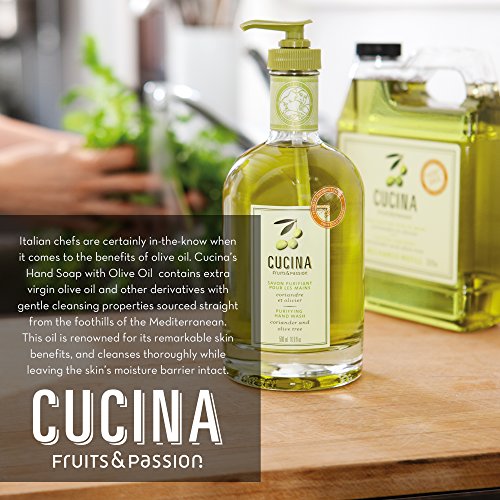Studio : FRUITS PASSION Publisher : FRUITS PASSION Binding : Misc. Product Description Cooking can be tough on your hands, so help them?recover with Cucina's Purifying Hand Wash.?It is made with pure olive oil to fight dehydration, olive tree extract to help soothe and heal minor burns and cuts, and sage and rosemary oils for aromatic and skin toning properties.? The soothing properties and refreshing?aromas of the Cucina line will stay with you long after you leave the kitchen. 0