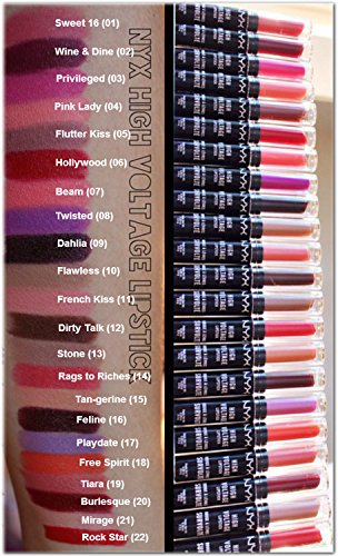 -. Feature : Color: Bronze/Gold / Item Condition: 100% authentic, new and unused. NYX Cosmetics High Voltage Lipstick HVLS05 - Flutter Kisses. / NYX Cosmetics High Voltage Lipstick HVLS05 - Flutter Kisses: Buy NYX Cosmetics Lipsticks - NYX Cosmetics High Voltage LipstickAmp up your look with our High Voltage lipstick Each of the 22 dramatic shades is infused with vibrant color with a super-rich finish