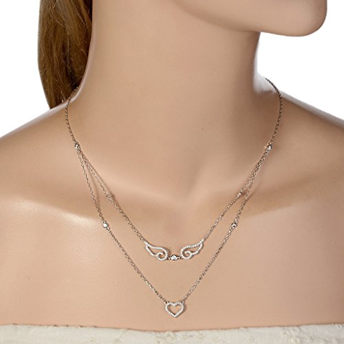 -. Binding : Jewelry -. Brand : EVER FAITH -. Color : Silver -. Department : womens -. Feature : [!]EVER FAITH is a US registered trademark and Ever Faith Jewelry(former name: Kiss Bling) is its only owner. We will pursue legal action against trademark infringement in case of UNAUTHORIZED sale or resale. / We have SGS Professional Certification for our Sterling Silver Items. Customers could go to a professional agency for testing them. 925 Sterling Silver is also suitable for sensitive skin to wear. / Cubic zirconias are paved to the jewelry item to secure from loosing. Pave settings are made up of lots of small stones set closely together. The stones are separated and held in place by little beads of the setting metal. The result is what looks like a continuous surface of the stones. / Length: 42.3cm(16.7")-44.8cm(17.6"), Pendant Size: 1cm(0.4") by 4.2cm(1.7"), Weight: 5g / WRAPPING: A Silver Polishing Cloth X A Gift Box X A Favor Bag. If you need assistance please contact us. -. Label : EVER FAITH -. Manufacturer : EVER FAITH -. Model : N07474-1 -. MPN : N07474-1 -. PartNumber : N07474-1 -. ProductGroup : Jewelry -. ProductTypeName : FASHIONNECKLACEBRACELETANKLET -. Publisher : EVER FAITH -. Studio : EVER FAITH -. Title : EVER FAITH 925 Sterling Silver CZ Graduation Gifts Love Heart Angel Wing Layered Pendant Necklace Clear