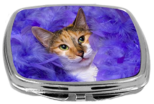 Rikki Knight Kitten Lying in Purple Feathers Design Compact Mirror, 17 Ounce