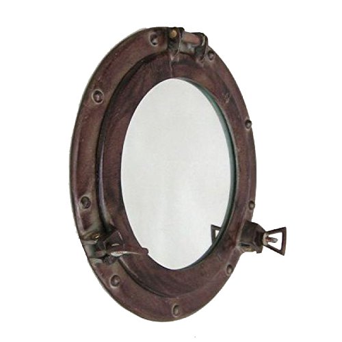 Firefly Home Collection Rust Finish Aluminium Porthole Wall Decor with Mirror, 11"