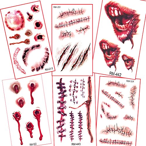 -. Title : Body Scar Tattoo Temporary Stickers for Cos Play Party Halloween Makeup 6Sheets/Pack