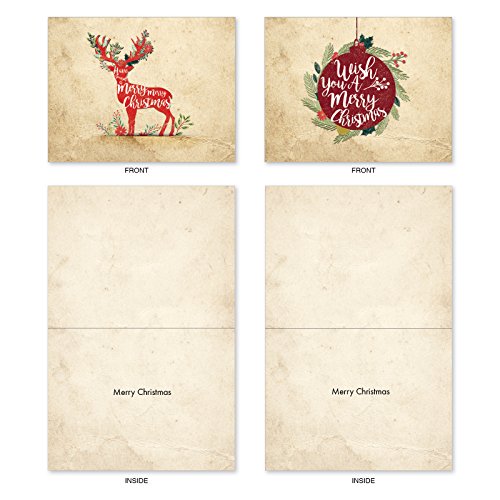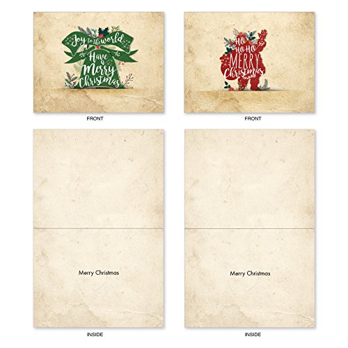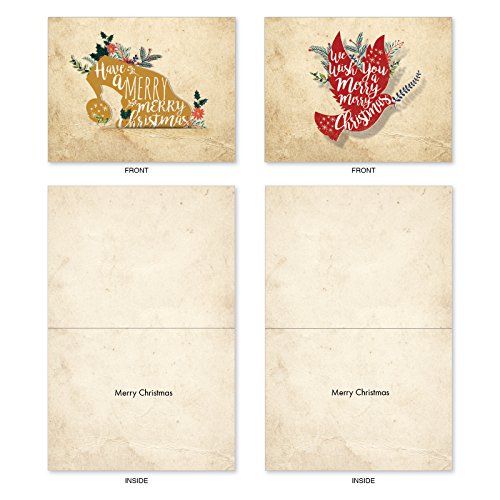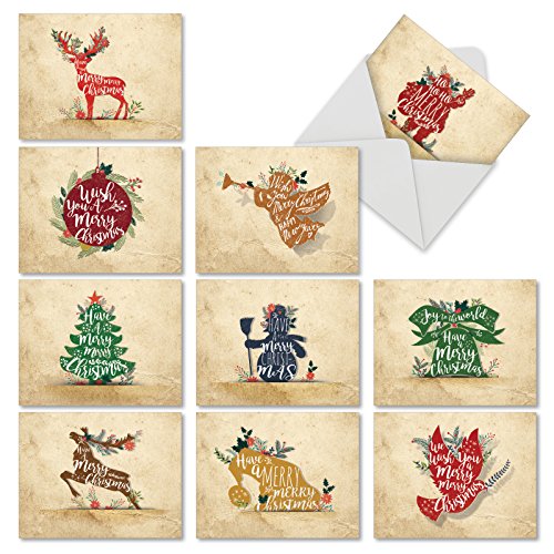 10 beautiful assorted (4'' x 5.125'') Merry Christmas note cards & white envelopes.