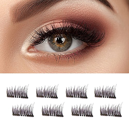 Double Magnetic False Eyelashes - No Glue Mess-Free Reusable - Best Fake Lashes Extensions - Beautiful Natural Enhanced Eyes, Volumized Lashes (4 Pair, 8...