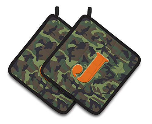 Caroline's Treasures Letter J Monogram - Camo green Pair of Pot Holders CJ1030-JPTHD, 7.5HX7.5W, Multicolor