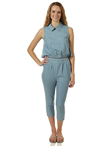 -. Title : 7Encounter Women's Open-Back Sleeveless Point Collar CaP.R.I Jumpsuit Denim
