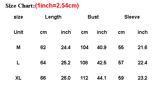 Asian Size:M/L/XL(Please note that this is Asian Size)