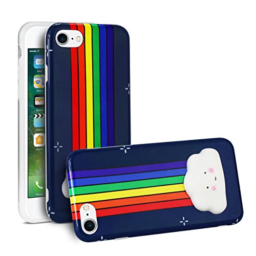 Reiko iPhone 7 TPU With 3D Soft Silicone Poke Squishy Rainbow Cloud Cell Phone Case - Navy