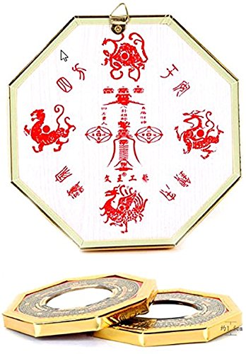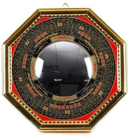 Faraway Bagua Luo board convex mirror back Gold Chinese feng shui entrance mirror Goods for powerful Luck & Success (Middle)