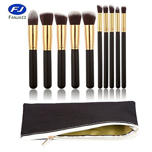 Makeup Brushes 10 Pcs Makeup Brush Set Professional Face Eyeliner Blush (Golden Black)
