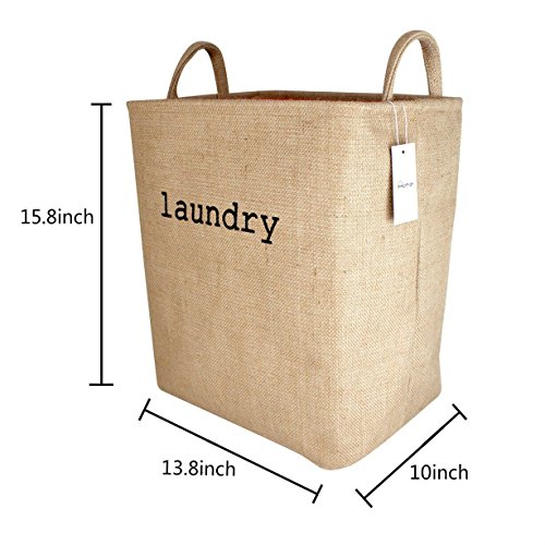 Household Denim Collapsible Small Large Size Laundry Hamper with Two Handles, Heavy Duty and Durable, Collapsible and Self Standing as Laundry Basket (Linen)