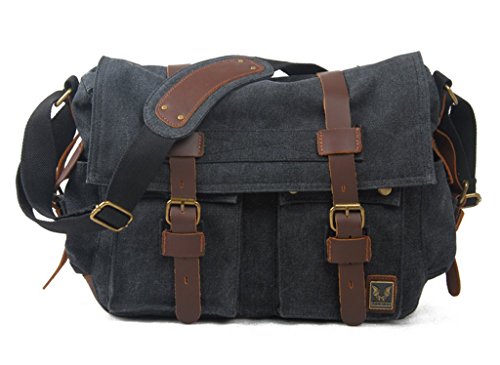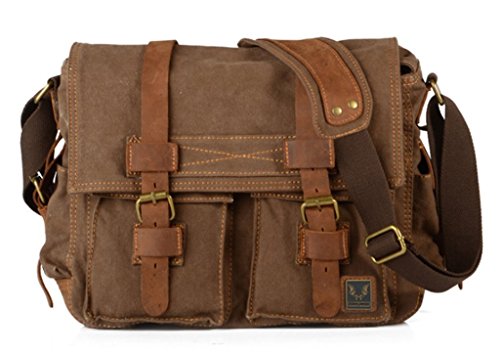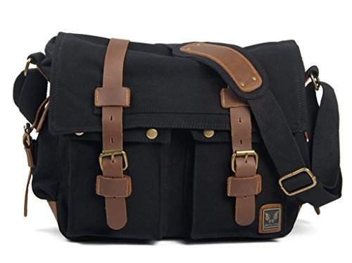 -. Title : Bagtopia Men's Vintage Canvas & Leather Laptop Messenger Bag - Fit 14" Laptop