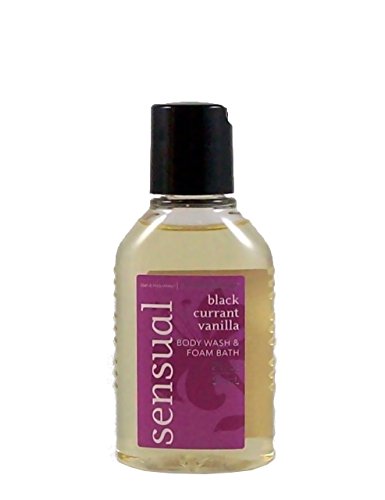 -. Binding : Misc. -. Brand : Bath & Body Works -. EAN : 0667526760438 -. Feature : Travel size 2 fl oz / 59 ml / Formulated to be faster-foaming with soothing skin conditioners / Breathe deeply for best results / Fragranced with essential oils and other natural fragrances / Not tested on animals -. IsAdultProduct : 0 -. Label : Bath & Body Works -. Manufacturer : Bath & Body Works -. MPN : na -. NumberOfItems : 1 -. PackageQuantity : 1 -. PartNumber : na -. ProductGroup : Beauty -. ProductTypeName : BEAUTY -. Publisher : Bath & Body Works -. Size : 2 Ounces -. Studio : Bath & Body Works -. Title : Aromatherapy Sensual Black Currant Vanilla Body Wash and Foam Bath 2 Oz Travel Size -. UPC : 637293032007