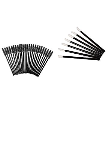 ALINCAS 100 Pcs Disposable Eyelash Mascara Wands Applicator (Black) + 100 Pcs Lipstick Gloss Wands