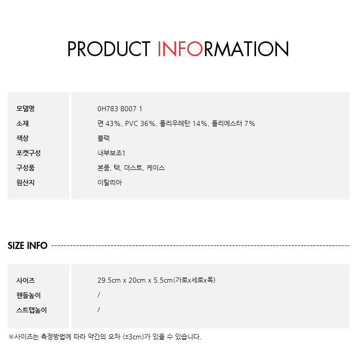 사이즈사이즈 : 29.5cm x 20cm x 5.5cm(가로x세로x폭)
