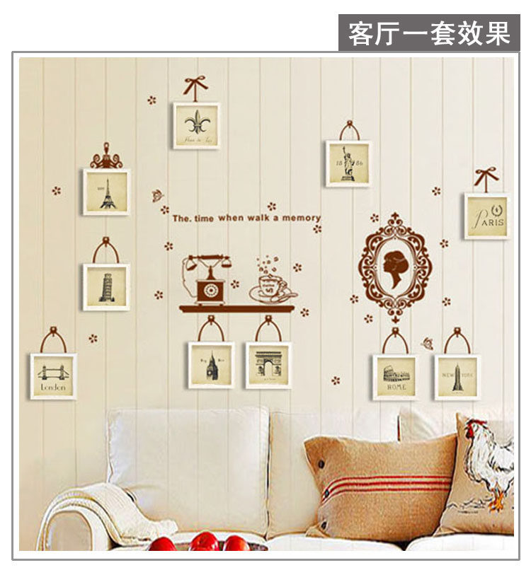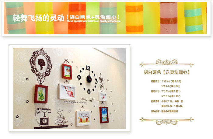 镜中花墙贴+相框+钟表: