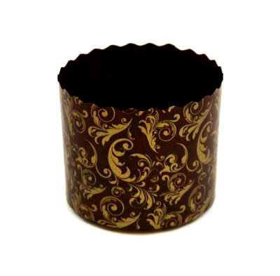 Mini Round Paper Panettone Muffins Mold High Baking Cups 2-3/4'' x 2-3/8' Florentine Mols - Brown and Gold Design - 25 pcs