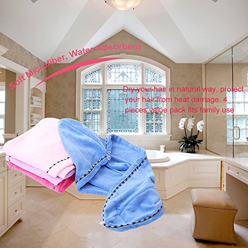Fanme Hair Drying Towels 4 Pack Microfiber Hair Twist Cap for Long Short Hair Wrap Fast Drying Bath Shower Head Towels Hat for Women Girl