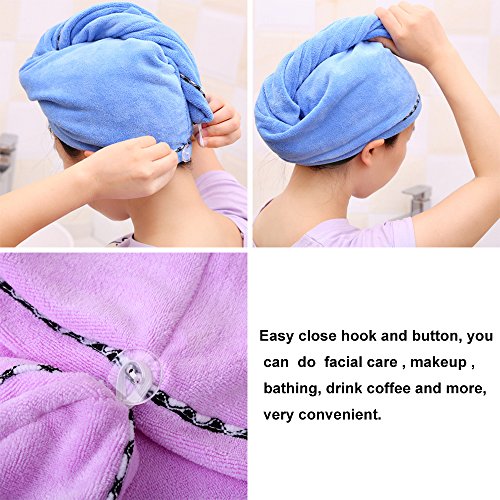 - Easy to Use – Bend and let your hair hang down naturally, and wrap your hair with the towel hat, then fix the towel on your head with secure button, easy and quick