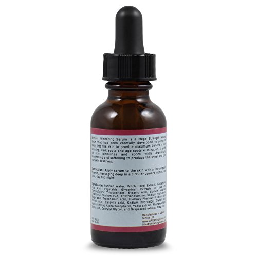 -. Feature : ✔ SKIN WHITENING SERUM FOR DARK SKIN : From dark age spots to a dull complexion, who doesn't want to brighten up their skin? Our serum acts as an amazing skin whitener that helps make photo damage a problem of the past! Kojic Acid, Glutathione, and Arbutin are just three of the key ingredients that make this skin whitening lotion so effective. By stopping the production of melanin, it helps slow and reverse the appearance of dark pigmentation for truly radiant skin! / ✔ DERMAL PENETRATION FOR BEST RESULTS : Most skin whitening products fail to deliver effective, long lasting results because they don't properly penetrate the skin. Our potent formula features powerful ingredients like Retinoic acid,Glycolic acid, Vitamin C Vitamin E that penetrate the skin's dermal layer! Together, they address the miniscule scar tissue that builds up and compromises skin's brightness. You'll see better, faster results than what most of our competitors are able to offer. / ✔ RESTORE A YOUTHFUL EVEN COMPLEXION: Unfortunately for most of us, our skin gives away our age. But believe it or not, this skin whitening cream for dark skin also boasts some impressive anti-aging benefits! Nutrient-rich Aloe improves skin's elasticity while Jojoba works to reduce the appearance of wrinkles. Hyaluronic Acid, the secret weapon in anti-aging skincare, keeps skin looking dewy and soft while offering protection from UV damage and free radicals. / ✔ SAFE NATURAL INGREDIENTS - A quick online search will show you that many similar products, like skin whitening soap or skin whitening pills, can have harmful and dangerous side effects - but not ours! Organic ingredients team up with other herbs, extracts, and vitamins that your skin will love. Simply apply a small amount to a clean face and neck, wait for it to dry, and you're ready to go! It's even safe for daily use. / ✔ SATISFACTION GUARANTEE: We also offer you guarantee to let you buy with confidence; no questions asked. However, we are quite sure that you will be super impressed with its ability to effectively handle dark spots on face, neck or hands, help you achieve more even skin tone, and handle problems like discolouration, ageing spots, hyper-pigmentation, etc