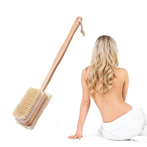 Bath & Relax Bath Body Brush Boar Bristle with Natural Loofah Back Scrubber Brushing-Long Handled Shower Back Scrubber Brush- Dry Brushing, Bath...